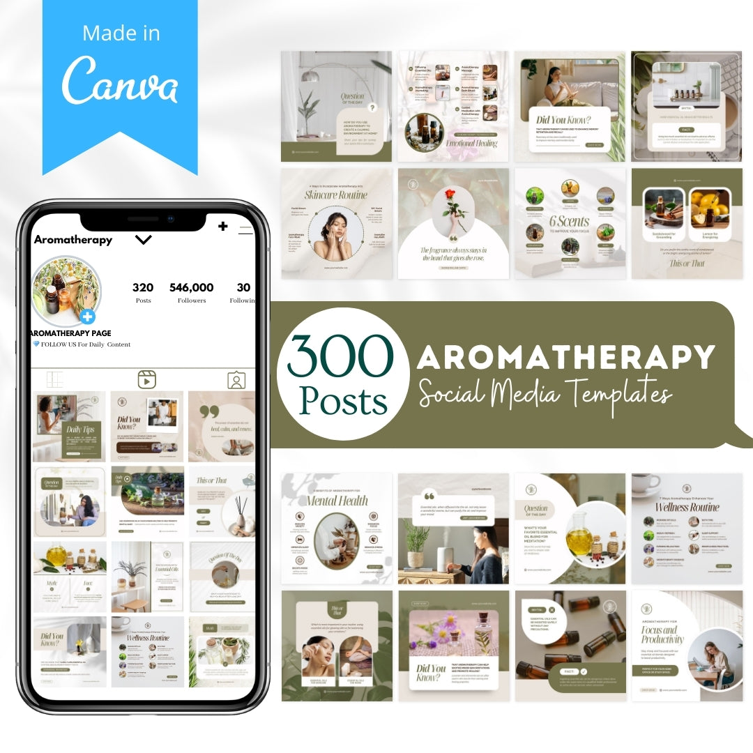 This bundle includes 300 thoughtfully designed Canva templates that will help you create compelling social media content specifically tailored for the aromatherapy industry. Whether you're educating your audience, debunking myths, or running promotions, these templates have everything you need to captivate and inform.