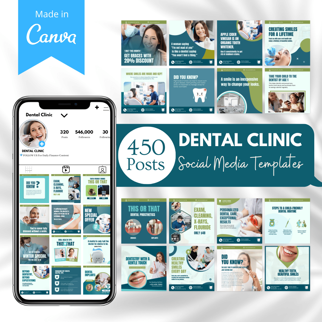 This expansive bundle includes 450 fully customizable Canva templates, meticulously designed to help you create eye-catching and informative social media content that emphasizes the importance of dental health, oral care, and beautiful smiles. Share enlightening infographics, educational facts, motivational quotes, and irresistible promotional posts to engage your audience and accentuate the advantages of your dental services. 😁🎨💡📈