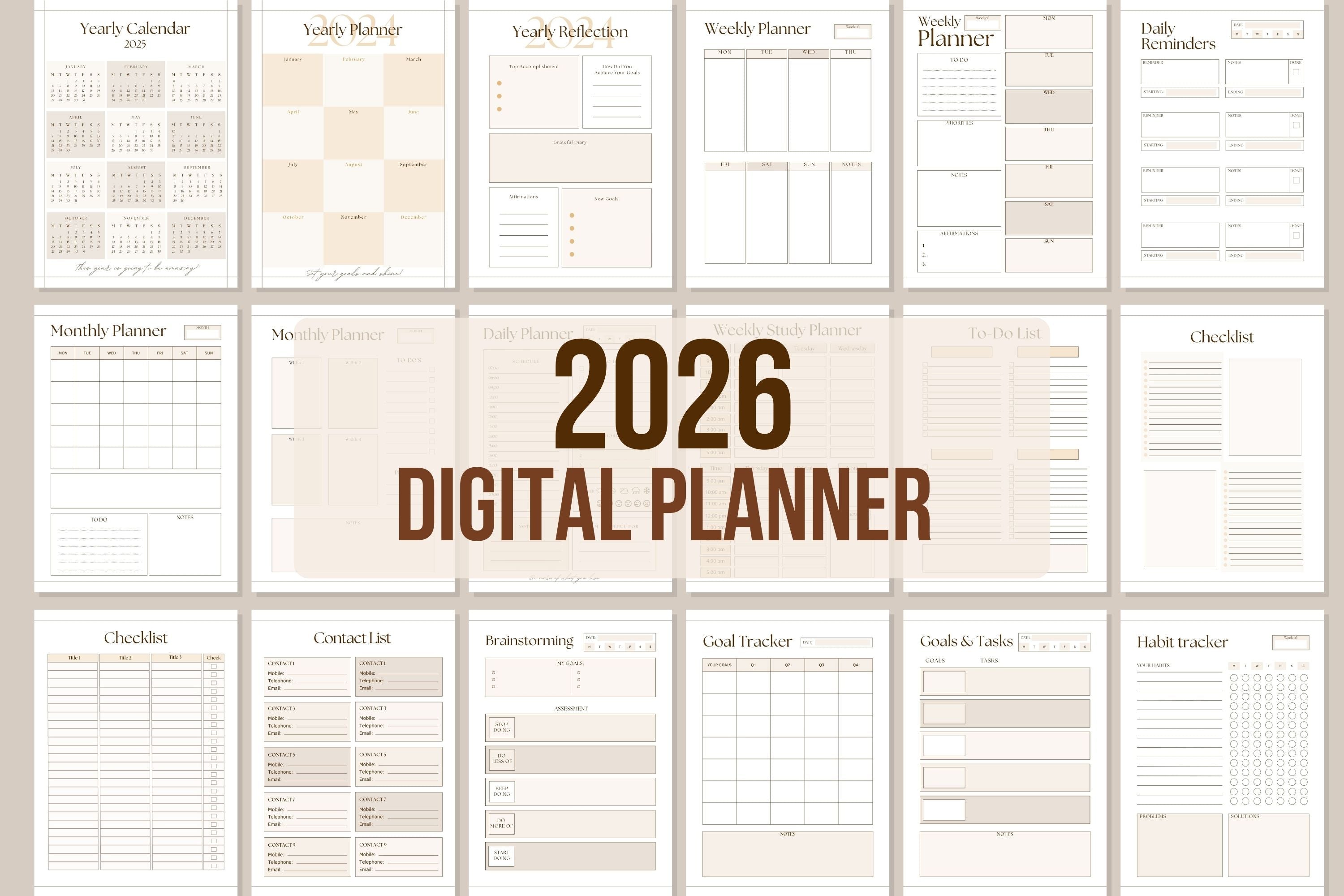 Perfect for anyone seeking a structured and effective way to manage their time and goals in 2026. Embrace efficiency and productivity with our Digital Planner!