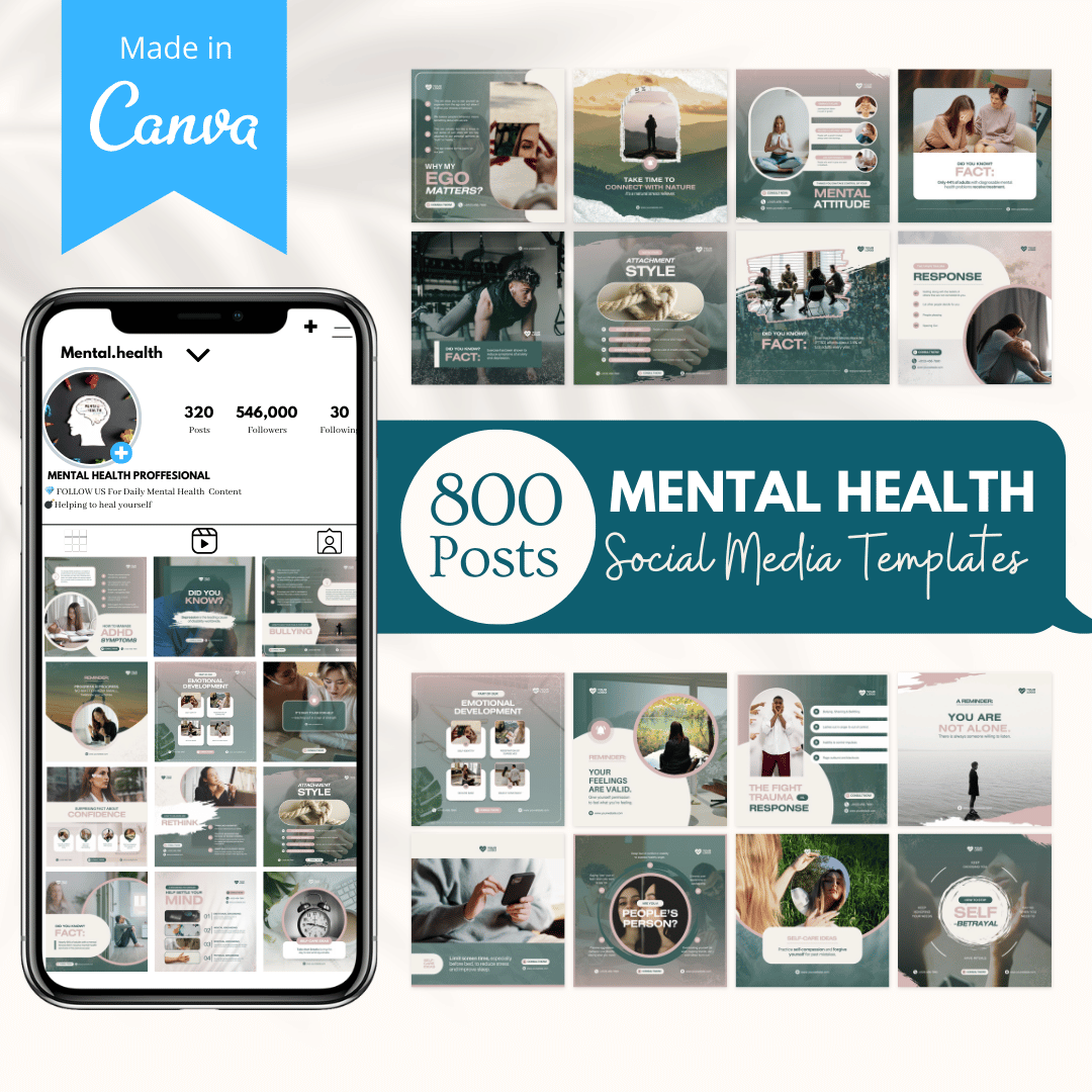 Our Mental Health templates are Perfect for therapists, counselors, and mental health professionals looking to connect with their followers and build their brands.